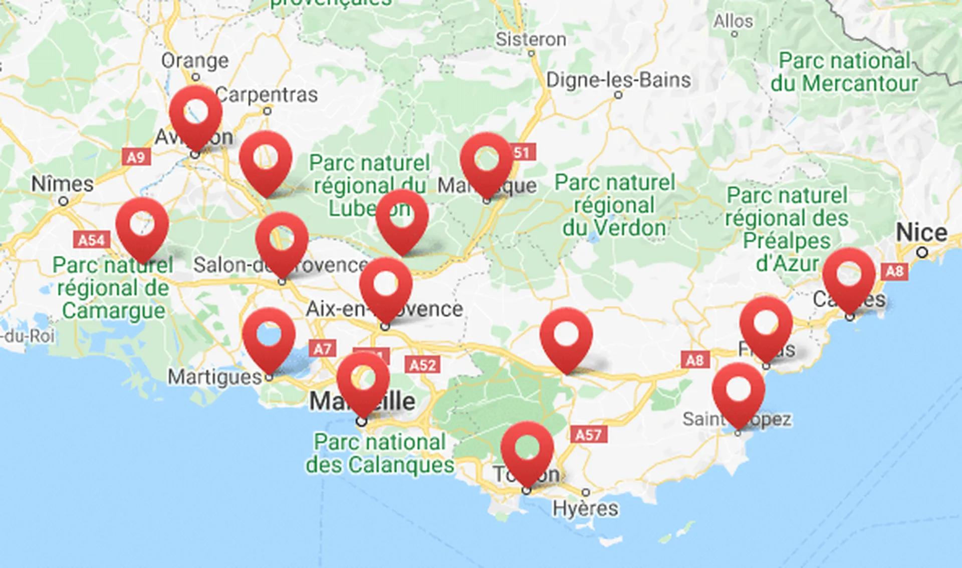 Nos zones d'intervention couvrent les grandes villes telles que Orange, Avignon, Arles, Nîmes, Salon de Provence, Aix-en-Provence, Pertuis, Martigues, Marseille, Aubagne, Toulon, Fréjus, Saint-Tropez, Cannes, Brignoles, Manosque et leurs environs.