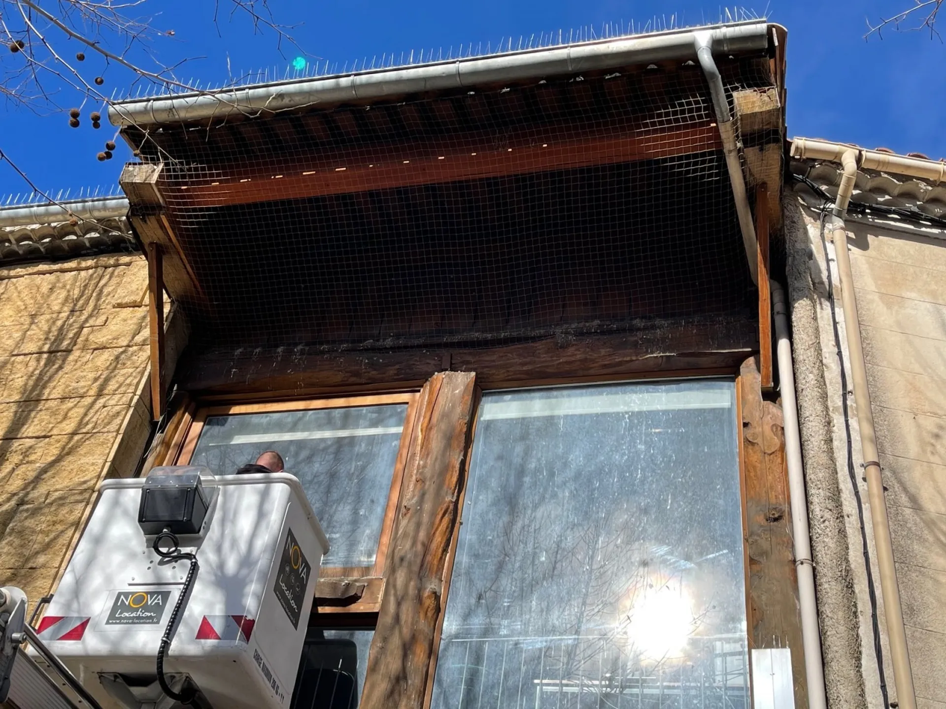 Ultérieurement ,suite à une persistance des pigeons sur là facade de cet établissement nous poserons également un filet anti pigeon afin de les empêcher définitivement de se poser sur la lucarne supérieure .