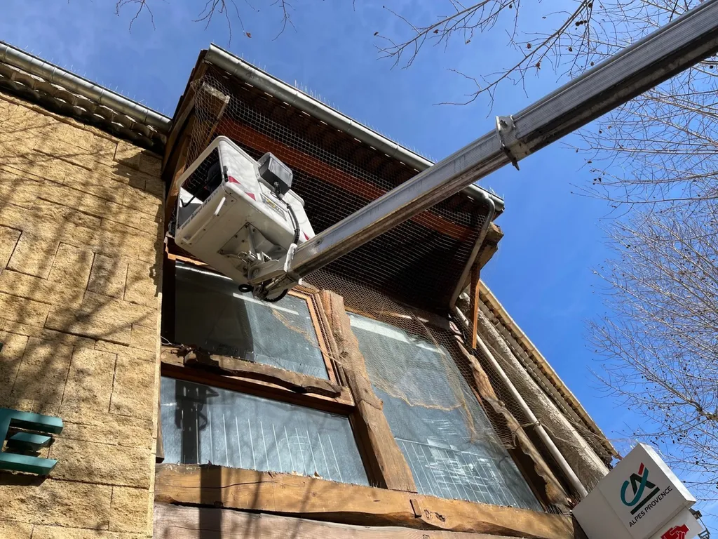 Nous avons réalisé ce chantier avec une nacelle afin de travailler en hauteur et en toute sécurité.